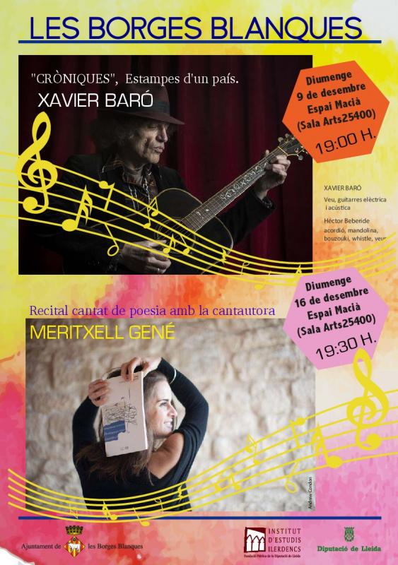 L'Ajuntament de les Borges Blanques i l'Institut d'Estudis Ilerdencs ofereixen, els diumenges 9 i 16 de desembre, diferents actuacions de musicals a la Sala 25400 de l'Espai Macià.