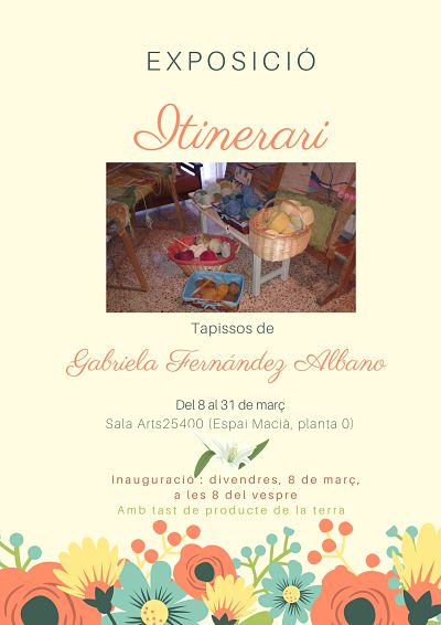 La pròxima inauguració a la Sala Arts25400 de l'Espai Macià serà aquest divendres, 8 de març, a les 8 del vespre. On de nou, comptarem amb l'obra colorista dels tapissos de la Gabriela Fernández.
