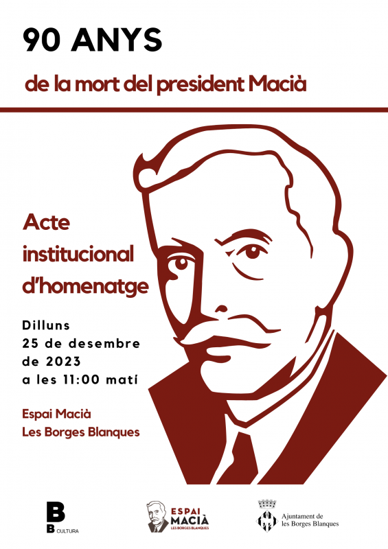 El proper dilluns 25 de desembre, l’Espai Macià de les Borges Blanques acollirà l’acte institucional d’homenatge al president Macià per commemorar els 90 anys de la seva mort.
