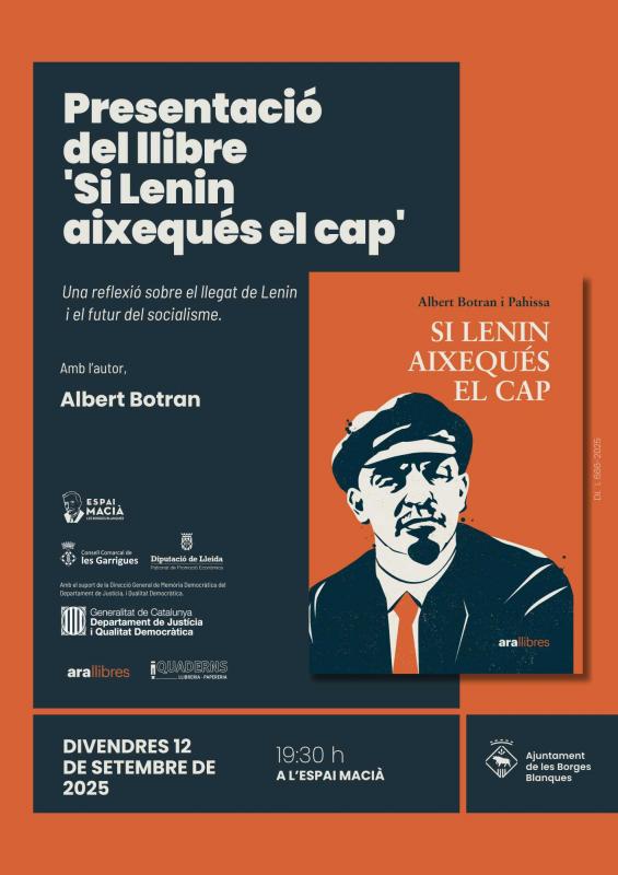 Avui 12 de setembre de 2025, a les 19.30 h, l’Espai Macià acollirà la presentació del llibre Si Lenin aixequés el cap d’Albert Botran.